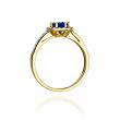 Brylanty o bardzo dobrej czystości Si2/H tworzą harmonijne połączenie z polerowanym złotem oraz podkreślają niezwykły blask i wielkość szafiru, nadając kobiecej dłoni strojnego, dynastycznego wyglądu!