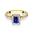 Brylanty o bardzo dobrej czystości Si2/H tworzą harmonijne połączenie z polerowanym złotem oraz podkreślają niezwykły blask i wielkość szafiru, nadając kobiecej dłoni strojnego, dynastycznego wyglądu!