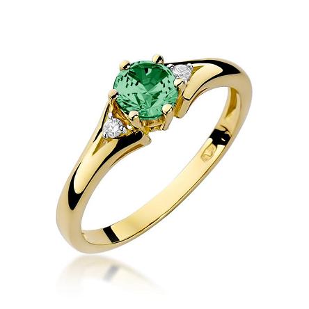 Pierścionek zaręczynowy z żółtego złota z brylantami i szmaragdem 0.03 ct
