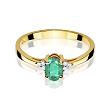 Pierścionek zaręczynowy z żółtego złota z brylantami i szmaragdem 0.05 ct