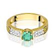 Pierścionek zaręczynowy z żółtego złota z brylantami i szmaragdem 0.08 ct
