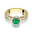 Pierścionek zaręczynowy z żółtego złota z brylantami i szmaragdem 0.20 ct