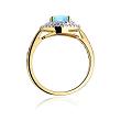 Czarujący pierścionek wykonany został z najwyższej jakości złota próby 585 oraz jednego, centralnie usytuowanego topazu o masie 0,80 ct - w kształcie prostokąta, po którego stronach zostały umieszczone kamienie szlachetne w szlifie brylantowym o łącznej masie 0,38 ct (czystość SI2, barwa H).