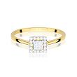 Zachwycający klasyczny pierścionek zaręczynowy wykonany z najwyższej jakości złota próby 585. Główny kamień w szlifie Princess – diament laboratoryjny o wielkości 0,15 ct, czystości VS2 i barwie F – olśniewa swoim doskonałym blaskiem i klarownością. Jego piękno podkreślają subtelne, boczne diamenty laboratoryjne o łącznej masie 0,08 ct, które dodają kompozycji elegancji i finezji.