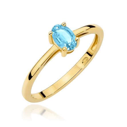 Elegancki pierścionek wykonany z najwyższej jakości żółtego złota próby 585 oraz jednego, centralnie usytuowanego owalnego topazu o masie 0,50 ct!
