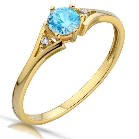 Efektowny pierścionek wykonany z lśniącego żółtego złota próby 585, udekorowany centralnie usytuowanym topazem o masie 0,50 ct!