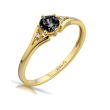 Zachwycający klasyczny pierścionek wykonany został z najwyższej jakości lśniącego żółtego złota próby 333 oraz jednej dużej centralnie usytuowanej czarnej cyrkonii, otoczonej mniejszymi kamieniami.