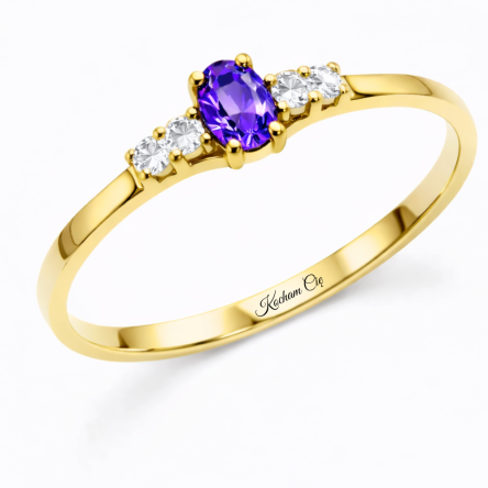 Klasyczny złoty pierścionek z fioletową cyrkonią – próba 333