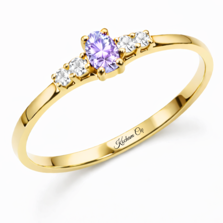 Klasyczny złoty pierścionek z lawendową cyrkonią – próba 333