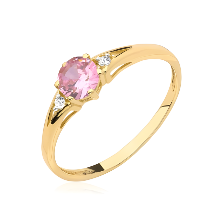 Pierścionek zaręczynowy złoty z różowym kamieniem