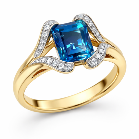 Złoty pierścionek z niebieską cyrkonią – elegancja w nowoczesnej formie