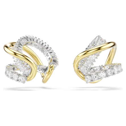 Dwukolorowe nausznice Swarovski Hyperbola w odcieniach złota i srebra to odważna propozycja dla kobiet, które lubią wyrazistą biżuterię i nowoczesne formy. Ich nieoczywisty design przyciąga spojrzenia, wprowadzając do stylizacji element ruchu, światła i nowoczesnej elegancji.