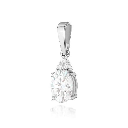 Klasyczna zawieszka, która zachwyca ponadczasową elegancją. Wykonana została z lśniącego białego złota próby 585, udekorowana diamentami laboratoryjnymi o imponującej czystości VS2 i barwie F oraz łącznej masie 0,73 ct! (1 x 0,70 ct oraz 3 x 0,0086 ct).