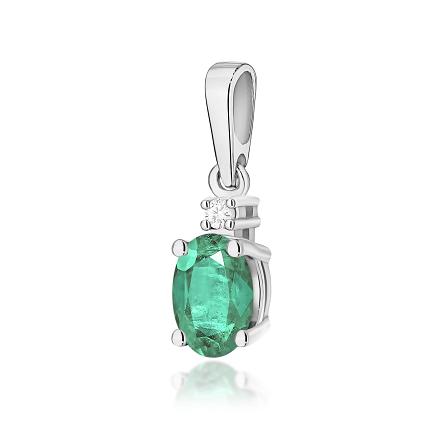 Czarująca zawieszka wykonana została z najwyższej jakości białego złota próby 585 oraz jednego, centralnie usytuowanego szmaragdu o masie 0,40 ct, nad nim został umieszczony diament w szlifie brylantowym o masie 0,015 ct (czystość SI, barwa H).