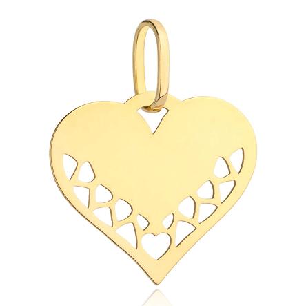Precyzyjnie wykonana złota zawieszka próby 585 w kształcie serduszka.