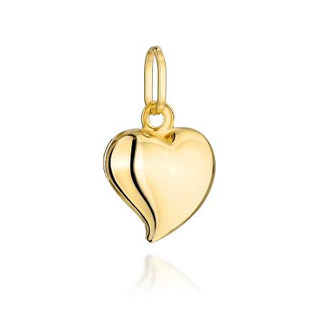 Precyzyjnie wykonana złota zawieszka próby 585 w kształcie serduszka.