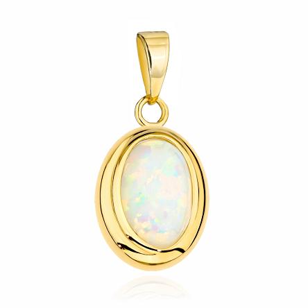 Precyzyjnie wykonana złota zawieszka próby 585 w kształcie owalu zdobiona syntetycznym opalem.