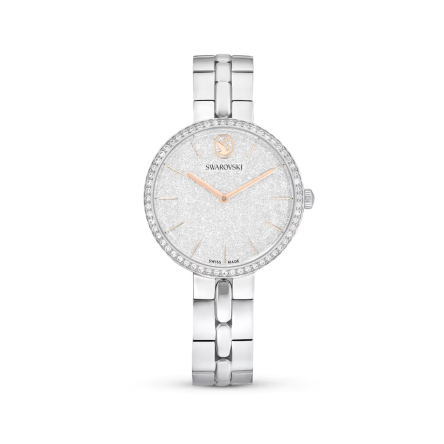 Postaw na ponadczasowy szyk z zegarkiem Swarovski Cosmopolitan, który łączy szwajcarską precyzję z wyrafinowanym blaskiem. Tarcza ozdobiona lśniącym pavé przyciąga spojrzenia i nadaje całości elegancki, biżuteryjny charakter.