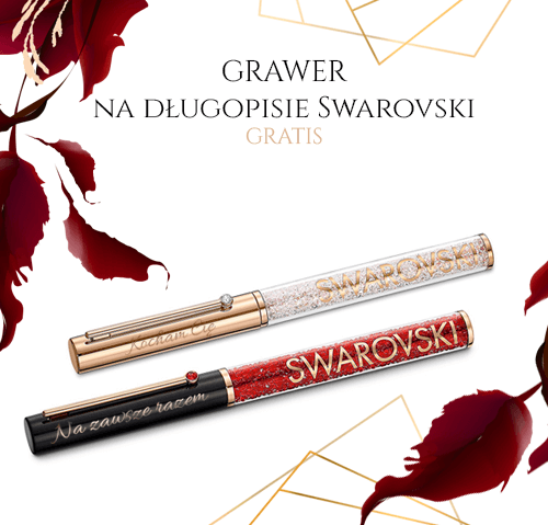 Dostępne w naszym sklepie internetowym długopisy Swarovskiego można spersonalizować przez grawerunek umieszczany na ich obudowach. To doskonały pomysł na prezent dla bliskiej osoby lub współpracownika. Grawer jest trwały i nie zaciera się wraz z upływem czasu. Umieszczona na długopisie sentencja sprawi, że stanie się on jedyny w swoim rodzaju. Doskonałym pomysłem na grawer może być krótki cytat sławnej osoby, osobiste życzenia, miłosne wyznanie lub symboliczna dla danej osoby data (np. urodzin dziecka, pierwszego spotkania z partnerem, ślubu itp.). Jeżeli osoba, której chcemy podarować taki wyjątkowy długopis, ma swoje własne niepowtarzalne powiedzonka, można pokusić się o umieszczenie na nim jednego z nich. Cokolwiek zostanie wygrawerowane na długopisie Swarovskiego będzie na nim uwiecznione na zawsze, dlatego warto postarać się, aby ta treść miała wyjątkowe znaczenie. Długopis z grawerem to cudowny prezent, który będzie sprawiał radość każdego dnia!
