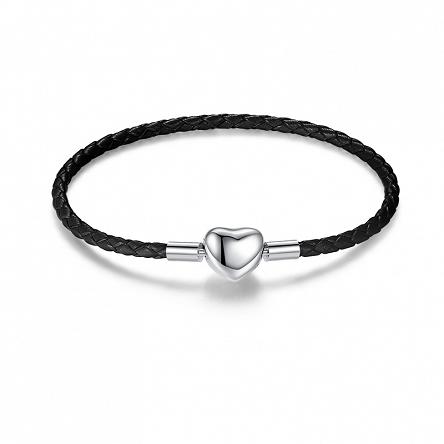 Bransoletka modułowa serce ekoskóra czarna • FUG0955