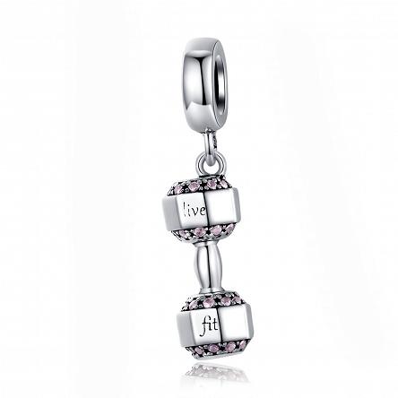 Charms idealny dla miłośników siłowni. Ozdobiony został różowymi cyrkoniami.
