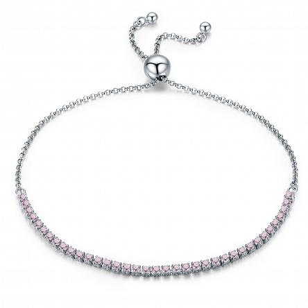 Delikatna bransoletka wykonana ze srebra próby 925. Ozdobiona została różowymi cyrkoniami.