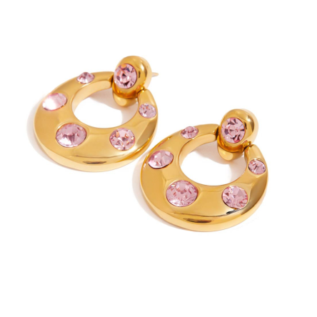 Kolczyki ze stali szlachetnej w kolorze złotym z różowymi kamieniami