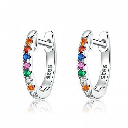 Kolczyki wykonane ze srebra próby 925. Kolczyki ozdobione zostały kolorowymi cyrkoniami.