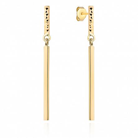 Kolczyki z żółtego złota wiszące prostokąty z diamentowaniem