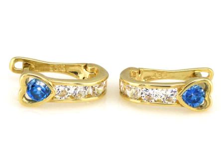Kolczyki wykonane ze złota próby 333, ozdobione białymi oraz niebieskiemi cyrkoniami.