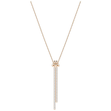 Olśniewający wisiorek Swarovski ozdobiony wzorem węzła symbolizującym wyjątkową więź pomiędzy dwojgiem ludzi. Połączenie kryształowej oprawy pavé, powłoki z różowego złota i modnej formy w kształcie litery Y podkreśla modny i romantyczny design przepełniony blaskiem kryształów Swarovskiego.