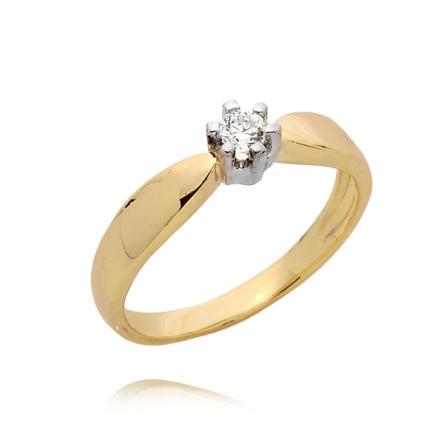 Ekskluzywny pierścionek z brylantem o masie 0,1ct, czystości SI i barwie G. Kamień posiada certyfikat autentyczności. Żółte złoto próby 585.