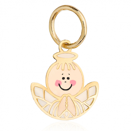 Precyzyjnie wykonana złota zawieszka próby 585 w kształcie aniołka. Doskonała jako ozdoba dla dziecka, prezent na urodziny, imieniny, pamiątka ważnej uroczystości.