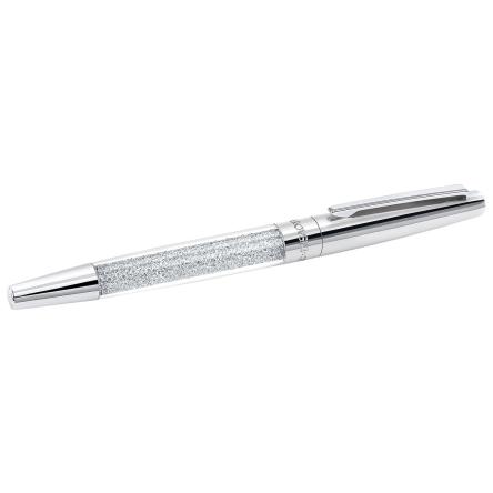 Kunsztowny długopis z linii Crystalline wykonany z metalu, pokryty powłoką w kolorze srebrnym. Wypełniony około tysiącem delikatnych jasnych kryształów, subtelnie mieniących się podczas pisania. Długopis posiada eleganckie etui.