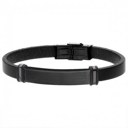 Bransoletka męska wykonana z naturalnej skóry i antyalergicznej stali szlachetnej 316L w kolorze czarnym. Jedyne zdobienie stanowi czarny, satynowany element doskonale nadający się do grawerowania.
