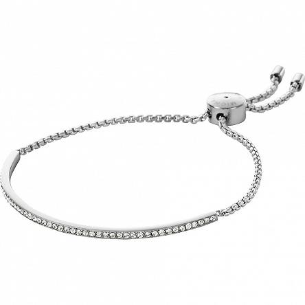 Ponadczasowa bransoletka Michael Kors ozdobiona białymi cyrkoniami. Bransoletka wykończona została nowatorskim, przesuwanym zapięciem kulkowym, które daje możliwość dopasowania rozmiaru bransoletkido nadgarstka.