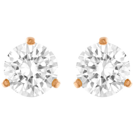 Kolczyki z linii Solitaire wykonane z metalu pokrytego powłoką w odcieniu różowego złota, ozdobione dużymi, białymi kryształami Swarovski.