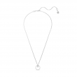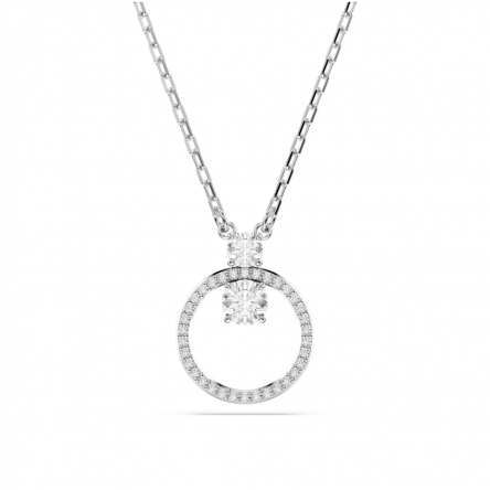 Ten nowoczesny naszyjnik z okrągłym wisiorkiem, pokryty powłoką z rodu, ozdobiony jest bezbarwnymi cyrkoniami Swarovskiego i dwiema większymi cyrkoniami w oprawie szatonowej. To wyjątkowy przykład elegancji, który doda blasku jako jedyna ozdoba, zwłaszcza w połączeniu z pasującymi kolczykami Dextera.