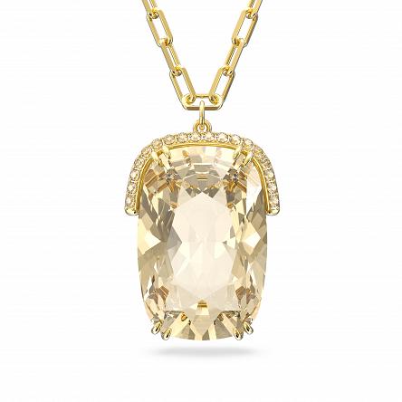 Ten naszyjnik składa się z kunsztownie wykonanego pojedynczego, ogromnego żółtego kryształu o wydłużonym szlifie poduszkowym, zawieszonego na delikatnym metalowym łańcuszku w kolorze złota.