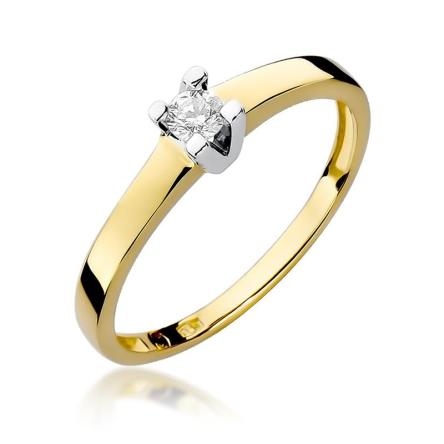 Uroczy pierścionek wykonany z najwyższej jakości lśniącego dwukolorowego złota próby 585, ozdobiony brylantem o masie 0,12 ct. Czystość kamienia SI2 oraz barwa H podkreślą magiczny blask brylantu, zaś dyskretna oprawa kamienia uwypukla jego kształt, jednocześnie sprawiając iż nabiera on jeszcze bardziej szlachetnego wyglądu.