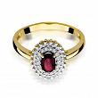 Pierścionek zaręczynowy z żółtego złota z brylantami i rubinem 0,19 ct