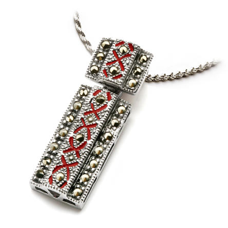 Zawieszka zdobiona markazytami i emalią.