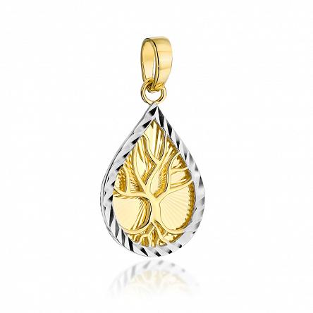 Zawieszka z dwukolorowego złota z drzewkiem szczęścia w łezce