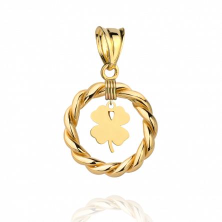 Zawieszka złota koniczynka w plecionym kółku FUG6-17-Z00343-2