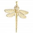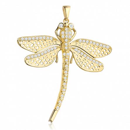 Precyzyjnie wykonana złota zawieszka próby 585 ozdobiona białymi cyrkoniami. Ważka posiada ruchomy odwłok.