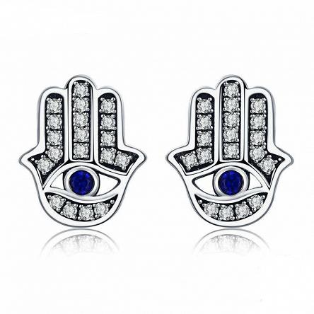 Kolczyki srebrne z cyrkoniami Reka Fatimy KFUG007