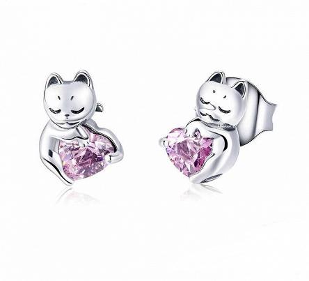 Kolczyki wykonane ze srebra próby 925. Ozdobione zostały różowymi cyrkonaimi.
