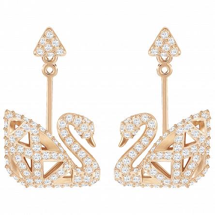 Kształt kolczyków nawiązuje do symbolu marki Swarovski – łabędzia, który został wykonany w konstrukcji 3D oraz ozdobiony jasnymi kryształami pavé.