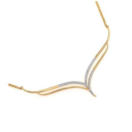 Ekskluzywny naszyjnik z brylantami. Brylanty o masie 0,18ct czystości SI i barwie H. Kamienie posiadają certyfikat autentyczności. Żółte złoto próby 585.