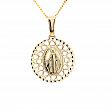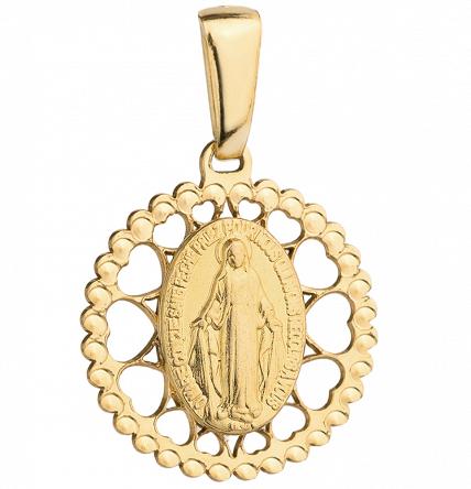 Precyzyjnie wykonany złoty medalik próby 585 w okrągłej ażurowej oprawie. Złoty medalik to pamiątka chrztu, pierwszej komunii, bierzmowania, ważnego jubileuszu, czy rocznicy.